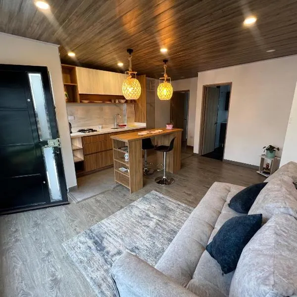 Apartaestudio Guatavita坐落于瓜塔维塔,距离尤尼森特罗购物中心有47公里,距离杰米杜克公园有24公里,配备露台和免费WiFi。 这家1卧室公寓配有起居室、带有线频道的平板电视、设施齐全的小厨房以及1间带淋浴设施的浴室。这家公寓也配备1间浴室。 这家公寓的客人可以享用美式早餐。 Apartaestudio Guatavita距离德波尔迪沃公园222号体育场有45公里。