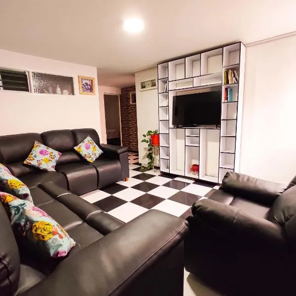 Apartamento a 10 minutos del aeropuerto de Bogotá位于波哥大,距离科尔菲利亚斯国际会展中心有12公里,配备庭院、花园和免费WiFi。这家公寓坐落于一栋建造于2000年的建筑内,距离艾尔坎体育场有16公里,距离Andino Shopping Mall有17公里。