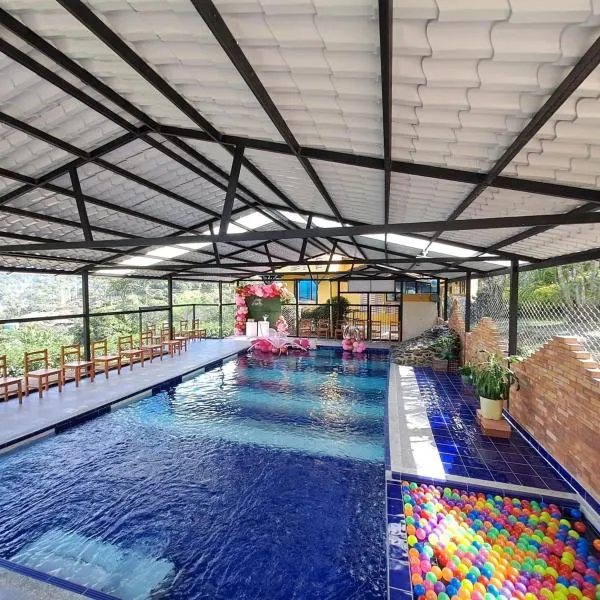 Piscina Privada, Zona parrillas, 8 min del Pueblo, Parqueadero Cubierto坐落于Cundinamarca的帕乔,拥有阳台,享有花园景。这家住宿提供私人泳池、免费WiFi和免费私人停车位。 这家4卧室度假屋提供带平板电视的起居室、设施齐全的厨房和3间浴室。这家度假屋也配备3间浴室。 这家度假屋距离兹帕基拉萨尔特大教堂有41公里。