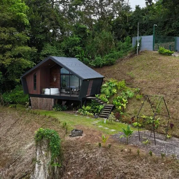 Casita Bohemia natural paradise位于Peje Viejo,提供带免费WiFi的池景客房,配备户外游泳池、花园和露台。内部提供私人停车位。 这家空调度假屋配有1间卧室、起居室、带冰箱和咖啡机的设施齐全的厨房以及1间带淋浴设施和吹风机的浴室。这家度假屋也提供休息区和1间浴室。 这家度假屋距离福图纳瀑布有41公里,距离卡兰布温泉有40公里。弗杜那机场距离住宿有27公里。