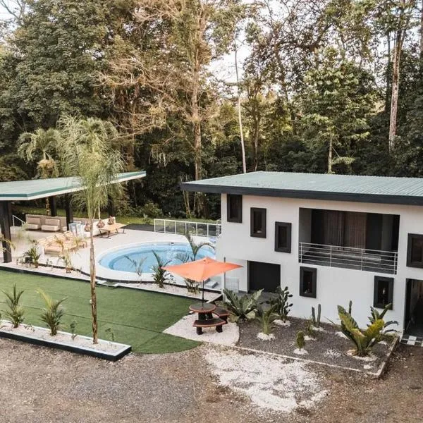 Villa El Bosque Dorado位于福尔图纳,配备带免费WiFi的池景客房,配有户外游泳池、花园和露台。这家住宿提供私人泳池和免费私人停车位。 这家空调别墅配有2间卧室、起居室、带冰箱和咖啡机的设施齐全的厨房以及1间带淋浴设施和免费洗浴用品的浴室。1间浴室配有浴缸,也配备吹风机,提供毛巾和床上用品。 这家别墅距离福图纳瀑布有8.8公里,距离卡兰布温泉有11公里。