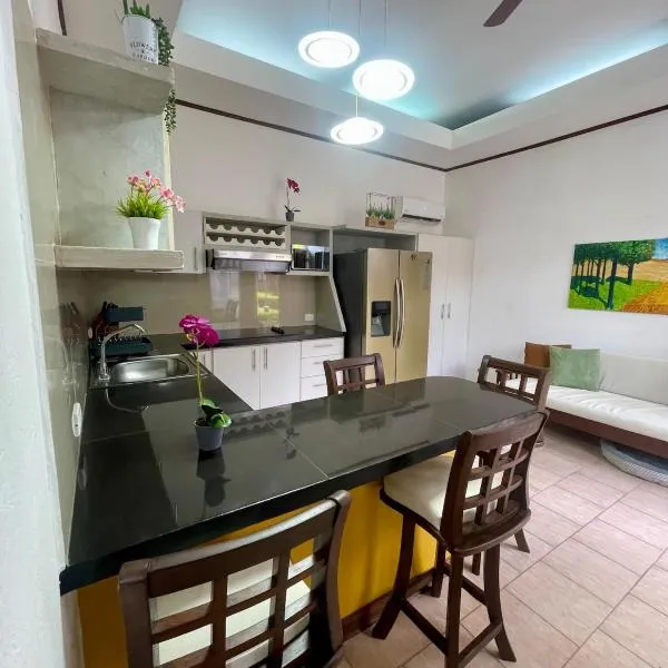 House in Playa Carrillo-Samara享有花园景,提供露台和庭院,距离乌贾拉斯遗址约有26公里。这家住宿距离兰基斯特植物园有23公里,配备花园和免费私人停车位。 这家空调度假屋配有1间卧室、起居室、带冰箱和咖啡机的设施齐全的厨房以及1间带浴缸或淋浴设施和免费洗浴用品的浴室。这家度假屋也配有1间浴室。...
