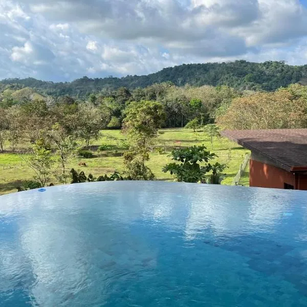 Hacienda las colinas位于Mesas,享有山景,提供户外游泳池、花园、露台、餐厅和烧烤设施。住宿提供的免费WiFi,内部提供私人停车位。 每间房间都配有空调、私人浴室以及带冰箱、洗碗机、微波炉和炉灶的厨房。住宿还配备吐司机以及咖啡机和电热水壶。 这家山林小屋供应美式早餐。