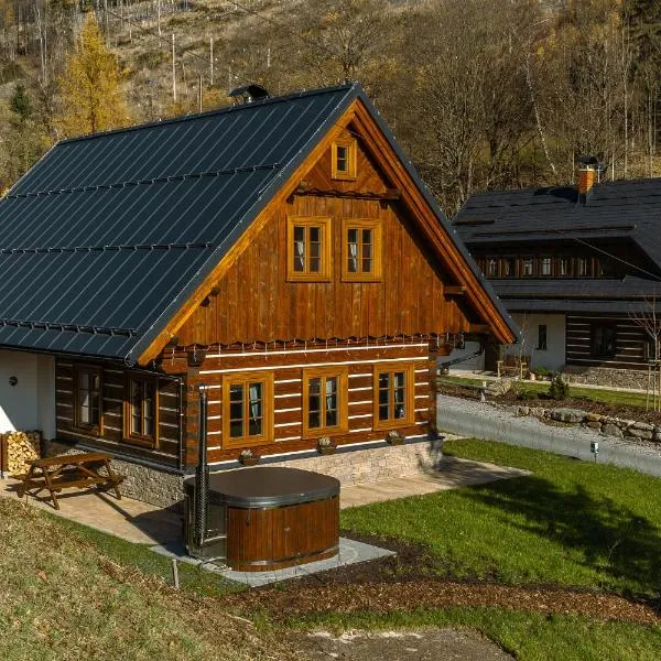 Chalupa Krkonoše位于赫拉德茨-克拉洛韦州的切尔尼杜尔,距离斯特拉内巴士站有不到17公里,提供免费WiFi、儿童游乐场、餐厅和免费私人停车位。 每间房间都配有露台、带冰箱的设施齐全的厨房、带沙发床休息区、平板电视、洗衣机以及带淋浴设施和免费洗浴用品的私人浴室。住宿还提供洗碗机、微波炉和炉灶以及咖啡机和电热水壶。 这家度假屋提供烧烤设施。