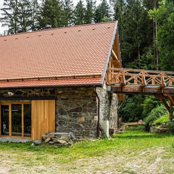 Na Chaloupce位于Kladky,享有花园景,提供免费WiFi。这家自助式公寓配有私人泳池、花园和免费私人停车位。 这家公寓配备1间卧室、1间浴室、床上用品、毛巾、平板电视、设施齐全的厨房以及池景露台。1间浴室提供淋浴设施和吹风机。 住宿内部配备室外泳池。客人可以在这家公寓附近体验滑雪和骑行。 Na...
