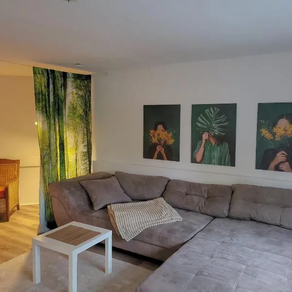 Ferienwohnung Heimsheim坐落于Heimsheim,距离普福尔茨海姆高山花园仅有16公里,提供花园、餐厅和客房服务。这家公寓配有免费私人停车位。客人可以在周边地区体验徒步和骑行等活动。 这家公寓提供露台,享有花园景,拥有1间卧室、起居室、平板电视、带冰箱和洗碗机的设施齐全的厨房以及1间带淋浴设施的浴室。这家公寓还配备休息区、洗衣机以及1间带免费洗浴用品的浴室。...