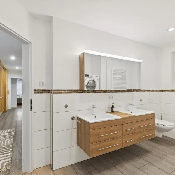 Beautiful apartment in Fernwald-Steinbach位于Niederdorla,配备露台,距离威兹拉斯坦撒伦有25公里,距离瑞塔尔竞技场有23公里。这家公寓提供免费私人停车位、ATM取款机和免费WiFi。 这家3卧室公寓配备起居室、平板电视、带冰箱和洗碗机的设施齐全的厨房以及1间带淋浴设施的浴室。这家公寓也为客人提供休息区和1间浴室。 这家公寓配备儿童游乐场。
