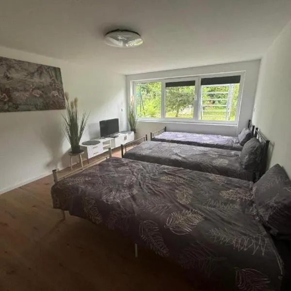 Ferien- und Messewohnung/ Apartment位于华斯奇德,距离梅赛/道依茨站有23公里,距离科隆三角大厦有24公里。客人可以在周边地区体验徒步。这家住宿距离朗盛竞技场有23公里,提供花园和免费私人停车位。 这家公寓配有1间卧室、带卫星频道的平板电视、带冰箱和烤箱的设施齐全的厨房、洗衣机以及1间带淋浴设施的浴室。1间浴室提供吹风机。 这家公寓距离Acht P!