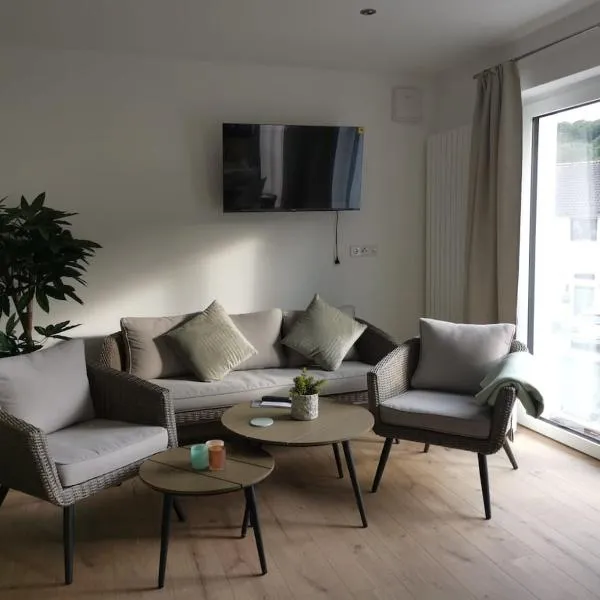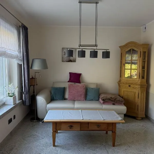 Mach mal Pause bei Geni & Bernd位于Kleineichen,提供带免费WiFi的花园景客房,配备花园、露台和餐厅。入住这家公寓的客人可以使用阳台。 这家公寓配有1间卧室、起居室、带冰箱和咖啡机的设施齐全的厨房以及1间带淋浴设施和免费洗浴用品的浴室。这家公寓还配备平板电视以及1间带吹风机的浴室。 如果客人想探索该地区,可以在周边地区体验徒步。