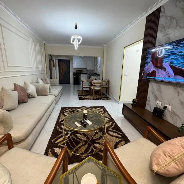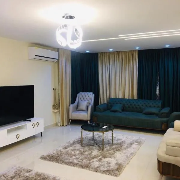 luxury apartment at Obour, 5th floor no elevator坐落于开罗,享有花园景,距离开罗国际会议中心有32公里,距离城市之星有33公里。这家住宿的客人可以使用阳台、免费私人停车位和免费WiFi。 这家空调公寓配有1间独立卧室、起居室、带冰箱和微波炉的设施齐全的厨房以及1间浴室。这家公寓也配备1间浴室。...