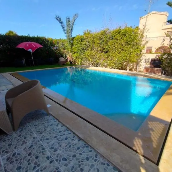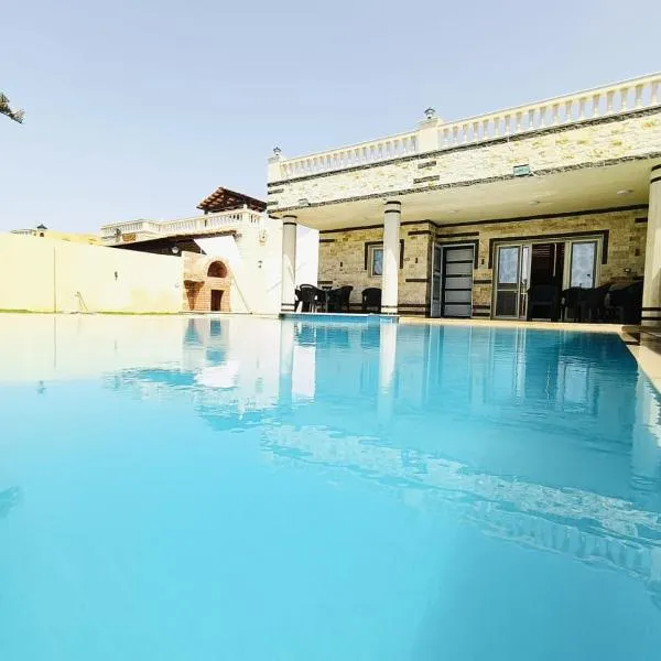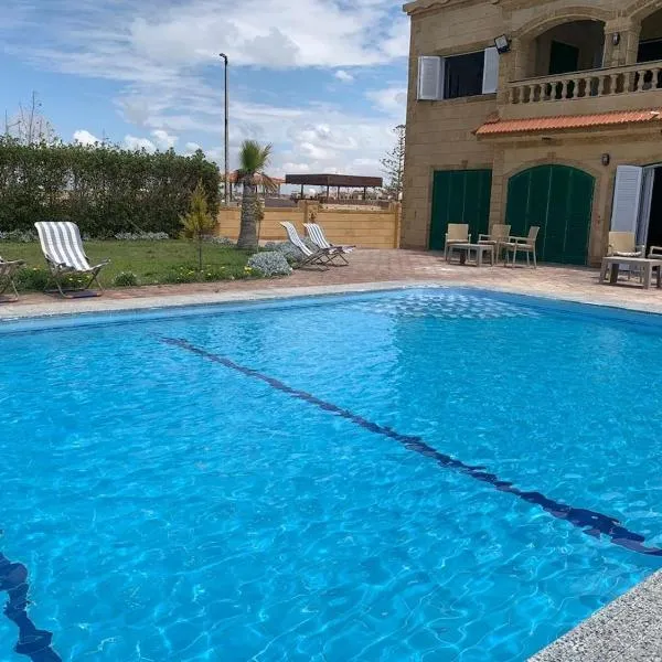 فيلابراسالحكمةالساحلالشمالي坐落于Dawwār Abū Maḩrūs,配有空调客房和阳台。这家住宿提供私人泳池、免费WiFi和免费私人停车位。 这家别墅提供露台,享有花园景,拥有4间卧室、起居室、平板电视、带迷你吧的设施齐全的厨房以及5间带热水浴池的浴室。这家别墅也配备5间浴室。 博格埃尔阿拉伯国际机场距离住宿有34公里。