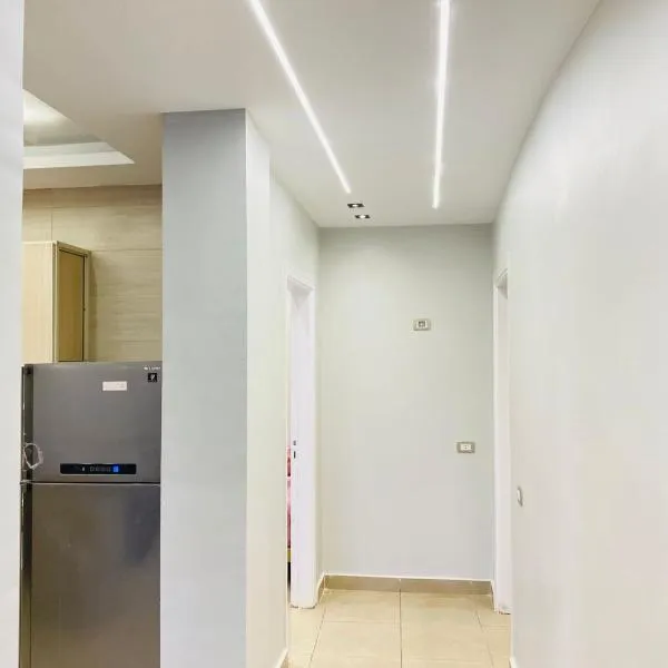 داونتاونالعالمينالساحلالشمالي位于Dawwār Abū Maḩrūs,提供露台。这家住宿提供私人泳池和免费私人停车位。 这家空调公寓配有2间独立卧室、起居室、带迷你吧的设施齐全的厨房以及1间浴室。这家公寓还提供平板电视、洗衣机以及1间带热水浴池的浴室。 博格埃尔阿拉伯国际机场距离住宿有34公里。
