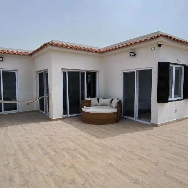 Private villa North Coast位于Dawwār Muḩammad Abū Shanab,享有花园景,提供季节性室外泳池、花园、私家海滩、露台和娱乐场所。 每间房间都配有阳台、带冰箱的设施齐全的厨房、带沙发床休息区、平板电视以及带淋浴设施的私人浴室。住宿还提供微波炉和电热水壶。 这家公寓式酒店距离波尔图码头有31公里。博格埃尔阿拉伯国际机场距离住宿有56公里。