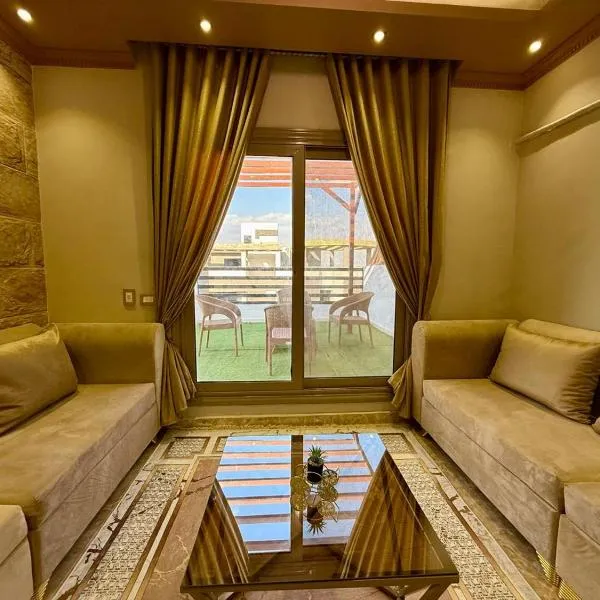 Pyramids View Apartment位于Giza,提供露台,距离The Grand Egyptian Museum有4.5公里,距离吉萨金字塔有6.9公里,距离狮身人面像有8.1公里。这家公寓提供免费私人停车位、ATM取款机和免费WiFi。 这家空调公寓配有2间独立卧室、起居室、带迷你吧的设施齐全的厨房以及2间浴室。这家公寓还配备平板电视、洗衣机以及2间带热水浴池的浴室。