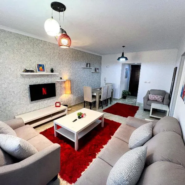 Modern 2-Bedroom Apartment享有花园景,提供露台和阳台,距离开罗国际会议中心约有28公里。这家住宿距离城市之星有25公里,配备花园和免费私人停车位。 这家空调公寓配有1间独立卧室、起居室、设施齐全的厨房以及2间浴室。这家公寓也配有2间浴室。 这家公寓距离侯赛因清真寺有31公里,距离开罗城堡有33公里。开罗国际机场距离住宿有14公里。
