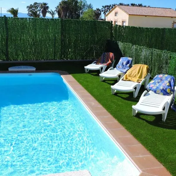 Casa Daguet坐落于L'Eucaliptus,配备免费WiFi、空调、户外游泳池和花园,距离欧卡利普图斯海滩有几步路,距离埃布罗三角洲有12公里。这家度假屋配有免费私人停车位。客人可以在周边地区体验徒步、帆板冲浪和垂钓等活动。 这家度假屋提供3间卧室、2间浴室、床上用品、毛巾、平板电视、用餐区、设施齐全的厨房以及池景露台。这家度假屋也配有2间带淋浴设施和洗衣机的浴室。