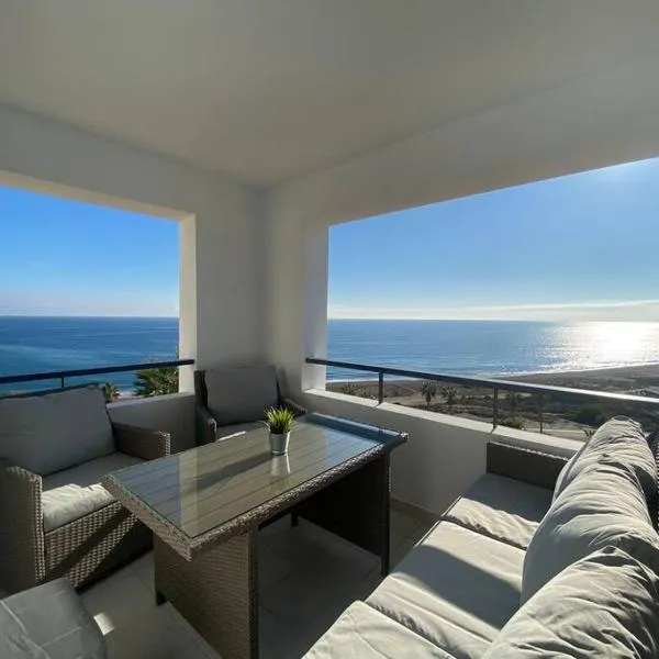 Apartamento Cervantes con terraza y vistas al mar享有市景,提供阳台和电热水壶,距离滨海高尔夫球场约有20公里。这家住宿距离炭黑海滩(Carboneras Beach)有8分钟步行路程,配备露台和免费私人停车位。 这家空调公寓配有2间卧室、起居室、带冰箱和咖啡机的设施齐全的厨房以及2间带坐浴盆和淋浴设施的浴室。