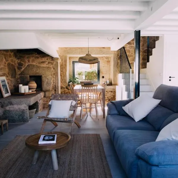 A Casa de Fóra坐落于加利西亚自治区的穆罗斯,配有庭院,享有山景。这家住宿距离维克斯海滩(Virxe Beach)有12分钟步行路程,配备花园和免费私人停车位。 这家公寓提供露台,享有海景,拥有2间卧室、起居室、平板电视、带冰箱和烤箱的设施齐全的厨房以及1间带淋浴设施的浴室。这家公寓还提供休息区、洗衣机以及1间带免费洗浴用品的浴室。 这家公寓距离伊扎罗瀑布有29公里。