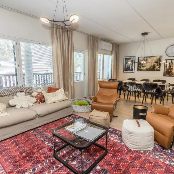 Rukatunturi 8坐落于鲁卡。这家住宿的客人可以使用阳台、免费私人停车位和免费WiFi。 这家度假屋配有3间卧室、起居室、带冰箱和咖啡机的设施齐全的厨房以及2间带淋浴设施的浴室。这家度假屋也配有休息区和2间浴室。 这家度假屋提供桑拿房。住宿内部提供滑雪设备存放处。客人可以在Rukatunturi 8附近体验滑雪。 库萨莫机场距离住宿有26公里。