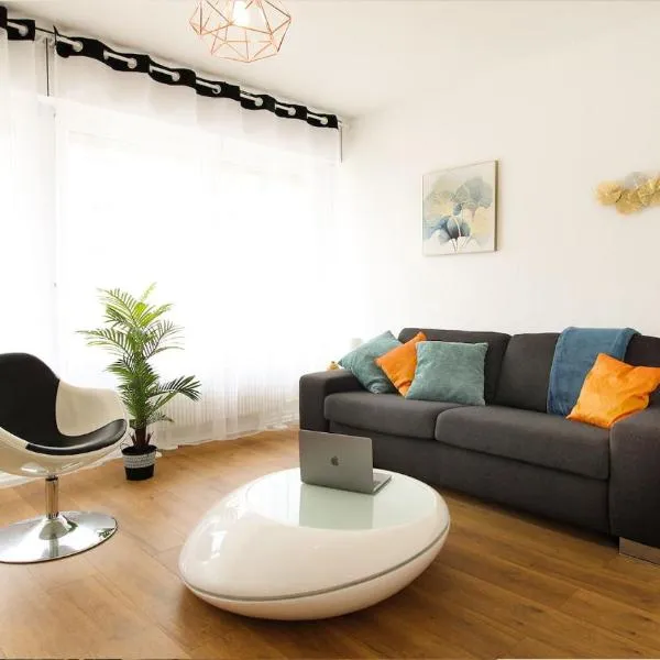 Chez Milène I T2 I Ambilly位于安姆比利,配备免费WiFi,距离日内瓦大喷泉有6公里,距离科尔纳火车站有7.3公里,距离圣皮埃尔大教堂有7.4公里。这家公寓距离日内瓦PALEXPO展览中心有12公里,距离欧洲核子研究组织有14公里。 这家公寓提供阳台,享有市景,配有1间卧室、起居室、平板电视、带冰箱和烤箱的设施齐全的厨房以及1间带淋浴设施的浴室。