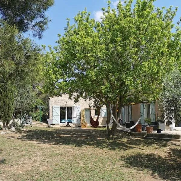 Villa provençale proche mer au calme位于马蒂格,距离特勒塞斯杜波特购物中心有38公里,距离朱丽叶地铁站有39公里,提供免费WiFi。这家住宿距离韦尔东海滩(Plage du Verdon)有19分钟步行路程,配备花园和免费私人停车位。 这家度假屋提供露台,享有花园景,配有1间卧室、起居室、平板电视、带冰箱和洗碗机的设施齐全的厨房以及1间带浴缸或淋浴设施的浴室。