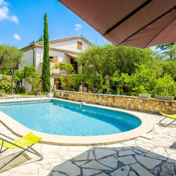 L'eden Provençal位于Les Saquetons,配有全年开放的室外泳池,配备免费WiFi,还为驱车前来的客人提供免费私人停车位。 房间配有露台、空调、电视以及带淋浴设施和吹风机的私人浴室。住宿还配备冰箱和微波炉以及咖啡机和电热水壶。 这家别墅的客人可在附近体验骑行,或使用花园。