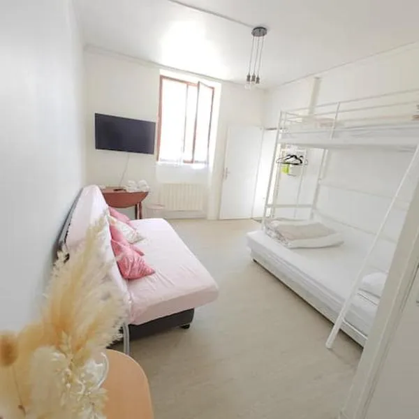 Maison Romantique entre deux fleuves chez l'habitant距离枫丹白露宫有24公里,配备花园、共用休息室和共用厨房,让客人尽享便利。住宿配备免费WiFi,内部提供私人停车位。 房间提供市景和山景露台,配有空调、休息区、有线频道平板电视和厨房。住宿还提供冰箱、洗碗机和烤箱以及咖啡机和电热水壶。 这家家庭式住宿的客人可以享用欧陆式早餐。 Maison...