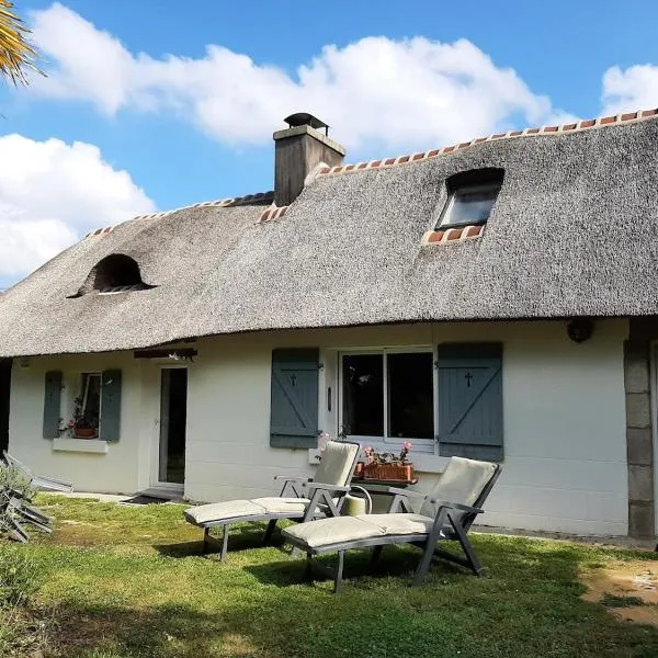 Boasting garden views, Chalet Cormoran, face à l'océan offers accommodation with a garden, a tennis court and a shared lounge, around 600 metres from Cap Coz Beach.