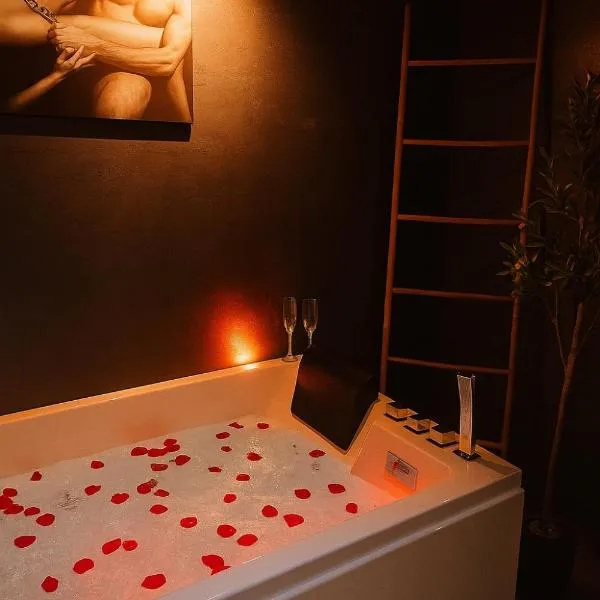 Nuit romantique, Suite avec jacuzzi et cinéma privé au design Japandi位于盖布维莱尔,距离米卢斯展览中心有22公里。客人可以使用热水浴池。住宿距离米卢斯火车站有25公里,提供免费WiFi和礼宾服务。 这家公寓配有1间卧室、起居室、带冰箱和咖啡机的设施齐全的厨房以及1间带淋浴设施和热水浴池的浴室。1间浴室提供免费洗浴用品。...