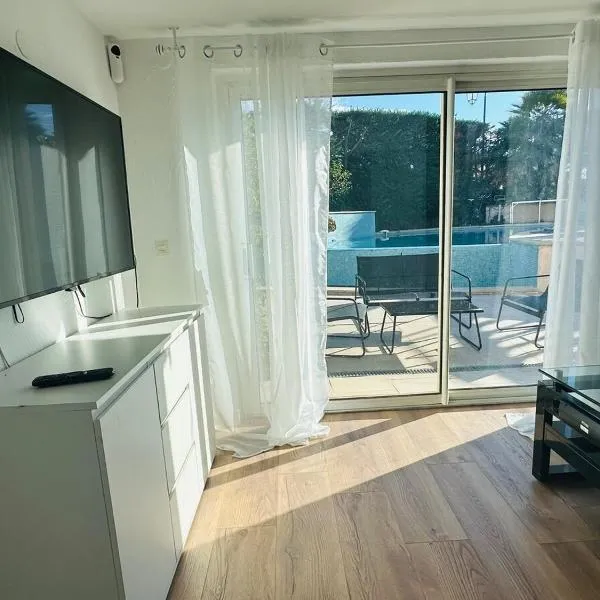 A recently renovated apartment set in Cannes, Mondello Hôtellerie Appartement de standing entièrement rénové, 47m2 avec piscine Cannes features a garden.
