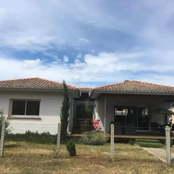 Gîte des pins享有花园景,配备露台和咖啡机,距离土地尽头圣母大教堂约有13公里。这家空调住宿距离吉伦特河口有20公里,为客人提供免费WiFi,内部提供私人停车位。 这家度假屋提供2间卧室、带冰箱和洗碗机的厨房以及1间带淋浴设施、免费洗浴用品和洗衣机的浴室。1间浴室提供吹风机。 波尔多-梅里尼亚克机场距离住宿有82公里。