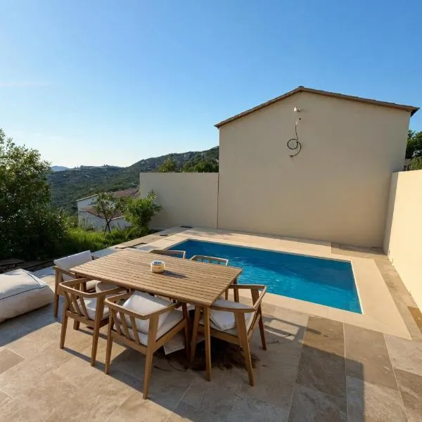 Featuring air-conditioned accommodation with a private pool, mountain view and a balcony, Air-conditioned authentic village house with sea view, terraces and swimming pool is set in Monticello.