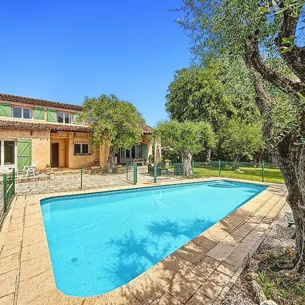 Villa familiale avec piscine à Mouans-Sartoux位于穆昂萨尔图,配备带免费WiFi的花园景客房,配备季节性室外泳池。这家自助式别墅配有私人泳池、花园和免费私人停车位。 这家别墅配有4间卧室、3间浴室、床上用品、毛巾、平板电视、设施齐全的厨房以及池景露台。这家空调别墅还提供休息区、洗衣机以及3间带淋浴设施和浴缸的浴室。