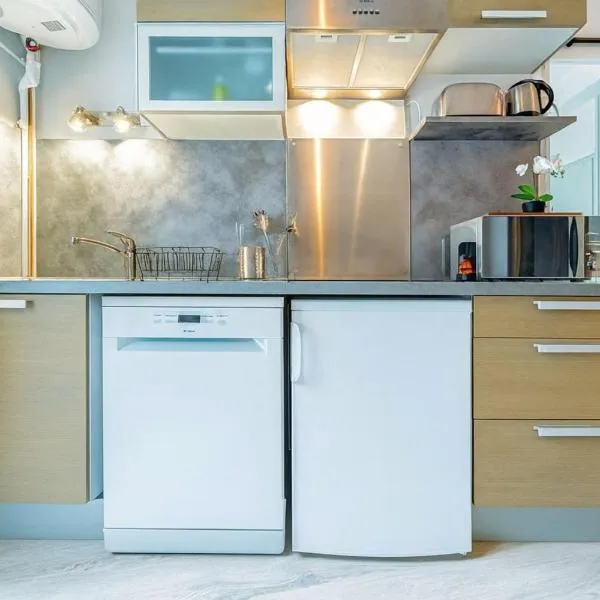 Spa & Relaxation 15 min de Lyon - Noomi Suite位于隆河省,距离里昂佩拉什站有6.4公里。客人可以使用热水浴池。住宿距离汇流博物馆有3.3公里,配备免费WiFi和免费私人停车位。 这家公寓拥有1间卧室、平板电视、带冰箱和洗碗机的设施齐全的厨房、洗衣机以及1间带淋浴设施的浴室。这家公寓配备空调,也配有1间带浴缸的浴室。