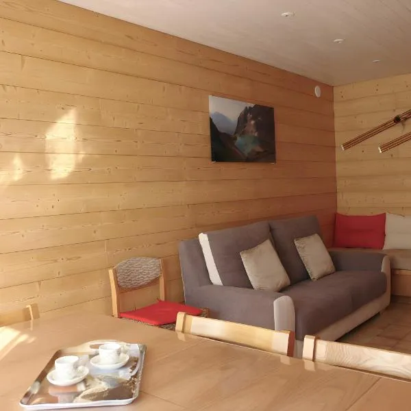 Studio au pied des pistes Briançon Serre Chevalier坐落于布里昂松,享有山景,距离塞斯特·雷科尔有38公里,距离Serre Chevalier有几步路。这家住宿距离加利比耶有36公里,配备滑雪至门口雪道和免费私人停车位。 这家公寓提供阳台,享有市景,拥有1间卧室、起居室、平板电视、设施齐全的厨房以及1间带淋浴设施的浴室。这家公寓也配有1间浴室。