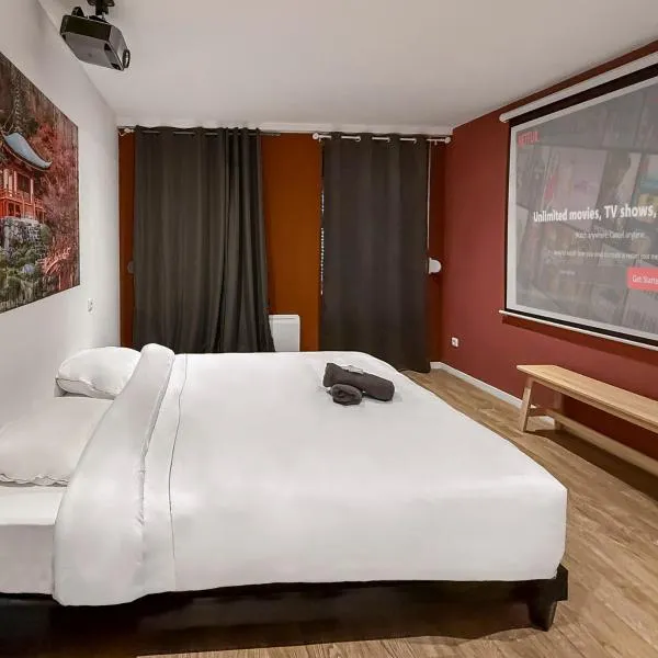 Located in Roubaix in the Nord region with Roubaix National Graduate School of Textile Engineering and La Piscine Museum nearby, Suite Cinéma #5#- Jacuzzi & projecteur-self check-in provides...