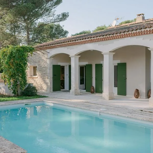 Gite Les Courlis坐落于Saint-Étienne-du-Grès,距离阿尔勒竞技场有18公里,距离法国高铁阿维尼翁站有19公里,配备免费WiFi和空调。客人可以使用带室外泳池的花园。内部提供私人停车位。 这家度假屋为客人提供露台、休息区、平板电视、带冰箱和洗碗机的设施齐全的厨房以及带淋浴设施和吹风机的私人浴室。住宿还配备烤箱、微波炉和炉灶以及咖啡机和电热水壶。