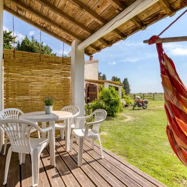 Les Pierrades en Camargue位于沃韦尔,配备带免费WiFi的花园景客房,配备季节性室外泳池、花园和露台。这家度假屋配有免费私人停车位。客人可以在周边地区体验徒步、垂钓和骑行等活动。 这家空调度假屋配有1间卧室、起居室、带冰箱和咖啡机的设施齐全的厨房以及2间带淋浴设施的浴室。这家度假屋也配备休息区和2间浴室。 这家度假屋配备儿童游乐场和烧烤设施。