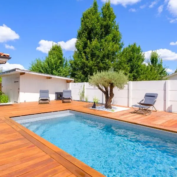 Les Nids de Galleben - La Villa Mimizan位于Liposthey,距离比斯卡罗斯湖有29公里。这家空调住宿距离艺术与传统博物馆有27公里,为客人提供免费WiFi,内部提供私人停车位。 这家别墅享有花园景,配备露台,配有3间卧室、起居室、平板电视、设施齐全的厨房以及2间带淋浴设施的浴室。2间浴室提供吹风机。 波尔多-梅里尼亚克机场距离住宿有66公里。