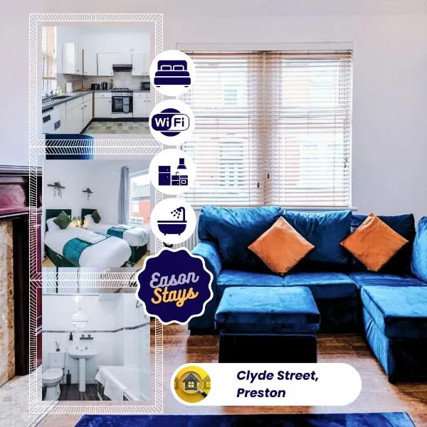 3 BDR House By Eason Stays Short Lets Preston坐落于Penwortham,提供免费WiFi和电视等设施,距离乔治国王大厅有18公里,距离珊瑚岛有28公里。这家公寓距离黑池游乐海滩主题公园有28公里,距离冬季花园会议中心有28公里。 这家公寓配有3间卧室、带冰箱和烤箱的设施齐全的厨房以及1间带浴缸和免费洗浴用品的浴室。这家公寓也拥有1间浴室。