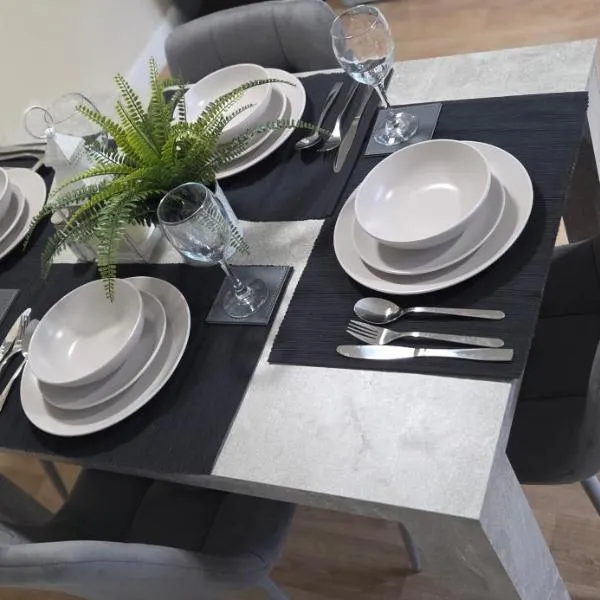 8 person 4 bedroom 4en-suite Free Parking坐落于沃里克,距离沃尔顿庄园有14公里,距离FarGo村购物中心有16公里,距离皇家莎士比亚剧团有17公里。这家住宿距离华威城堡有4.3公里,配备露台和免费私人停车位。 这家公寓提供4间卧室、带冰箱和烤箱的厨房以及4间带淋浴设施、吹风机和洗衣机的浴室。这家公寓也配有4间浴室。