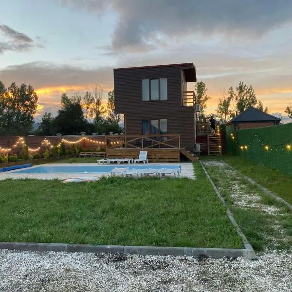 Cottage Hamaki Pool & Spa - Bazaleti Lake坐落于Chanadirtkari,距离医科大学地铁站有44公里,距离Boris Paichadze Dinamo Arena有45公里,配备空调住宿。客人可以使用带室外泳池的花园。内部提供私人停车位。 每间房间都提供露台、带冰箱的设施齐全的厨房、带沙发床休息区、平板电视、洗衣机以及带坐浴盆和免费洗浴用品的私人浴室。