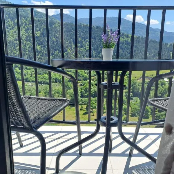 Cozy apartment in Borjomi with beautiful view位于博尔若米。这家公寓提供花园、露台和免费WiFi。 这家公寓提供阳台,享有山景,配有1间卧室、起居室、平板电视、带冰箱和炉灶的设施齐全的厨房以及1间带浴缸或淋浴设施的浴室。1间浴室提供吹风机。 库塔伊西国际机场距离住宿有154公里。