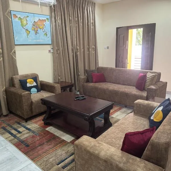 [B] Bakerstreet - Beautiful Two Bedroom Apartment坐落于阿克拉,提供花园,距离克瓦米·恩克鲁玛纪念公园有14公里,距离独立拱门有15公里,距离杜波依斯泛非文化中心有7.9公里。这家公寓提供免费私人停车位、24小时前台和免费WiFi。 这家公寓提供2间卧室、2间浴室、床上用品、毛巾、带有线频道的平板电视、用餐区、设施齐全的小厨房以及花园景露台。