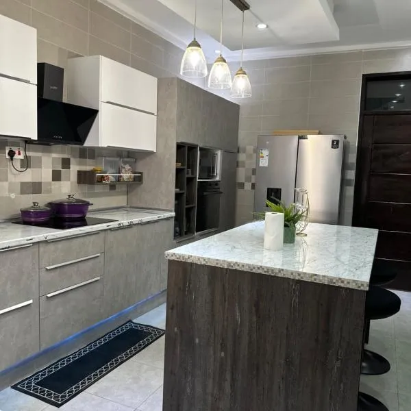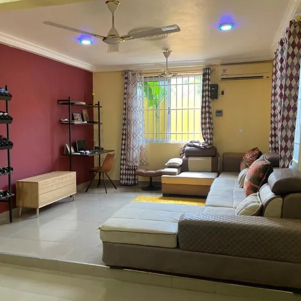 Cozy two bedroom Apartment in Kasoa位于Kasoa,距离克瓦米·恩克鲁玛纪念公园仅有30公里,享有市景,提供免费WiFi和免费私人停车位。这家住宿享有山景,距离独立拱门有31公里,距离阿克拉中央清真寺有27公里。 这家空调公寓配有2间卧室、起居室、带冰箱和咖啡机的设施齐全的厨房以及2间带浴缸的浴室。这家公寓也拥有休息区和2间浴室。