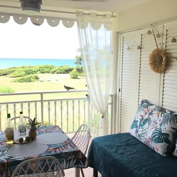 Agréable studio au bord de mer.位于圣弗朗索瓦,提供带免费WiFi的海景客房,配备花园、私家海滩和露台。这家公寓配有私人泳池。客人可以在周边地区体验徒步和浮潜等活动。 这家空调1卧室公寓提供1间浴室,配有淋浴设施。这家公寓提供池景阳台,也为客人提供平板电视、小厨房和1间浴室。 这家公寓距离葡萄干克莱尔海滩(Raisins Clairs Beach)有2.2公里。