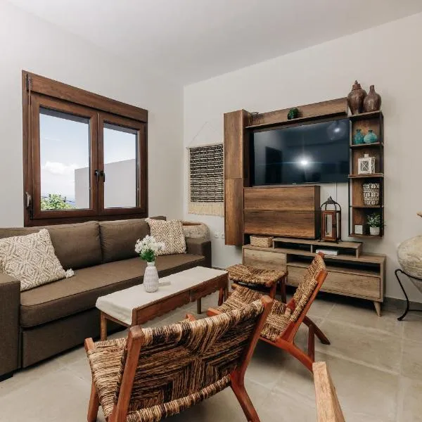Cozy Residences in the center of Volissos Village - Lydia Lithos-提供花园以及带阳台和免费WiFi的空调住宿,距离马纳格罗斯海滩(Managros Beach)有2.4公里。 每间房间都配备露台、带冰箱的设施齐全的厨房、带沙发床休息区、平板电视以及带淋浴设施和免费洗浴用品的私人浴室。住宿还提供烤箱、炉灶、吐司机、咖啡机和电热水壶。