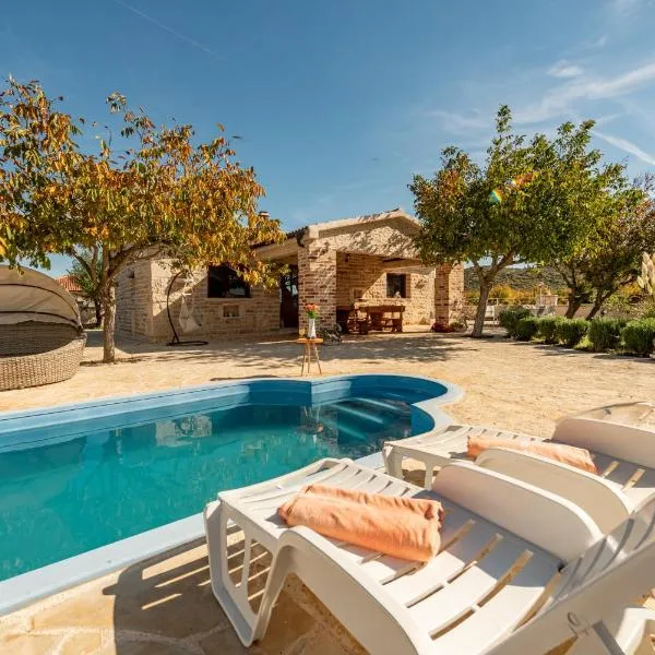 Holiday Home Vujuša by Interhome位于Stankovci,享有池景,配备客房、私人泳池和露台。这家住宿距离科纳提码头有21公里,提供季节性室外泳池和免费私人停车位。 这家空调度假屋配有4间卧室、起居室、带冰箱和咖啡机的设施齐全的厨房以及3间带淋浴设施和吹风机的浴室。这家度假屋也提供3间浴室。