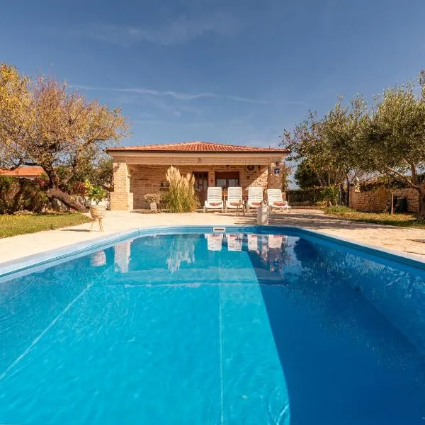 Villa Nebesi ZadarVillas坐落于Pristeg,享有山景,提供免费WiFi。这家自助式别墅拥有私人泳池、花园和免费私人停车位。 这家空调别墅配有2间卧室、起居室、带冰箱和咖啡机的设施齐全的厨房以及4间带淋浴设施和吹风机的浴室。这家别墅也配有4间浴室。 除了室外泳池,这家别墅还配备露台。