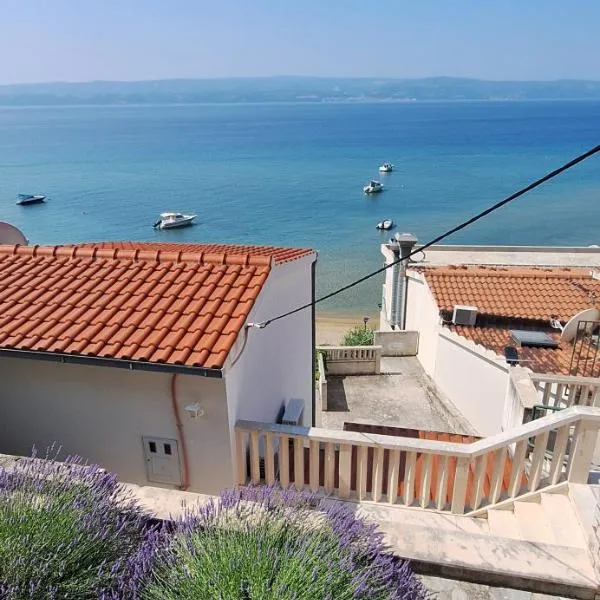 Apartments by the sea Duce, Omis - 8633坐落于斯普利特-达尔马提亚县的奥米什,拥有露台。这家公寓距离瓦夫列海滩(Vavlje Beach)有3分钟步行路程,距离戴克里先宫有23公里。 这家1卧室公寓配有起居室、电视、带冰箱和炉灶的设施齐全的小厨房以及2间带淋浴设施的浴室。这家舒适型公寓配备免费私人停车位,还配有免费WiFi。